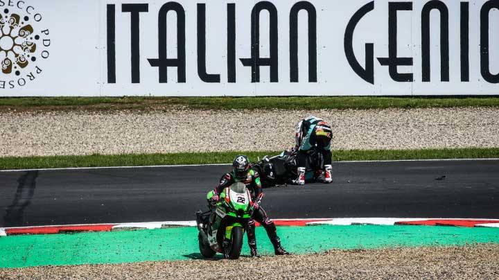 不過可惜在倒數第四圈時.Rea又再度發生轉倒.摔車後的Rea