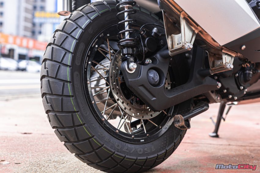 後方則為240mm單碟配單活塞卡鉗.標配雙通道ABS剎車系統.