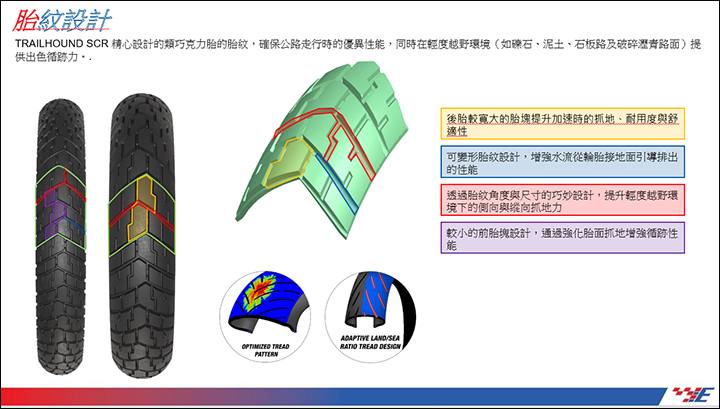 TRAILHOUND SCR(山犬)採用 80% 公路、20% 越野的胎紋設計,相比