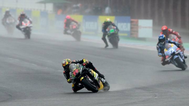 而狀況正好的Zarco很快就追上AM73.並在直線道選擇以內線搶入
