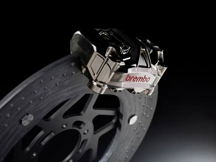 這套街道合法的CCB碳纖維陶瓷煞車系統是由義大利Brembo負責研發