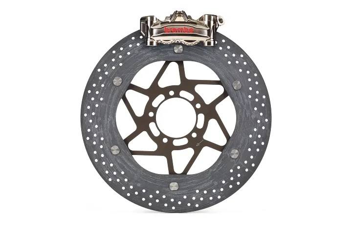 Brembo提供WSBK的尺寸則是336mm與338.5mm。更大直徑的碟盤能夠擁有更好的