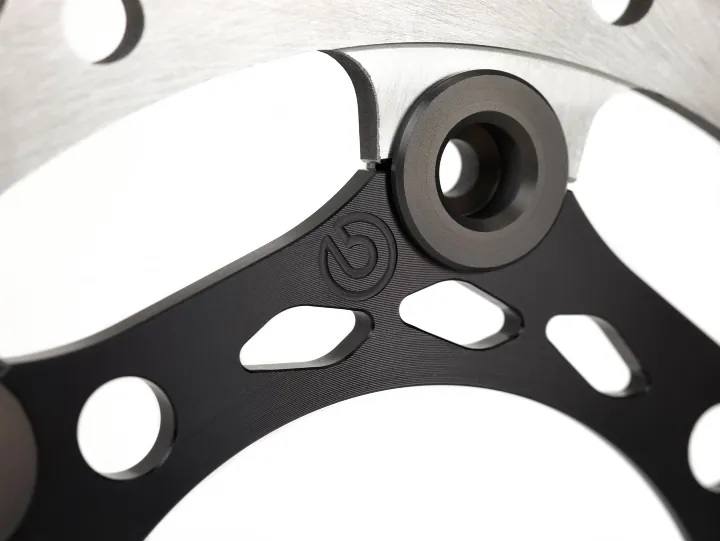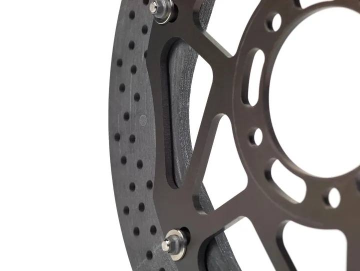 兩件式碟盤的浮動機構設計與MotoGP的產品相同,固定螺栓位於碟盤向內側,