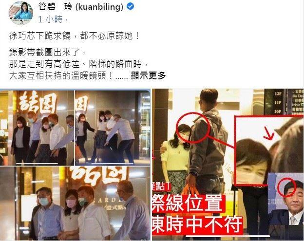 國民黨台北市議員徐巧芯接獲爆料照片,五月某晚在內湖高檔私廚,總統親信洪耀福,及國策顧問、內科園區協會理事長廖全平等英系大將在座,內政部長徐國勇居主位,內湖分局長王炳睿也與會作陪。這家私廚訂位困難,徐巧芯根據爆料質疑是否經營地下匯兌的富商郭哲敏訂位埋單?這張照片,既說明黨政不分,又隱隱透露綠黑好交情。