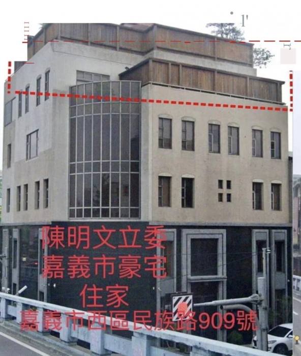 資料顯示,由陳明文妻子廖素惠、即將參選立委兒子陳冠廷持有的三棟建物中,包含陳明文住家,坐落於嘉義市西區的住處、服務處等建物,疑似違反《建築法》第25條第1項規定:建築物非經申請直轄市、縣(市)(局)主管建築機關之審查許可並發給執照,不得擅自建造或使用或拆除」,同法第70條第1項前段規定:「建築工程完竣後,應由起造 人會同承造人及監造人申請使用執照」。